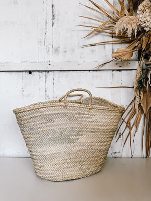 Die naturbelassene Korbtasche aus Palmfasern ist groß und praktisch zugleich.